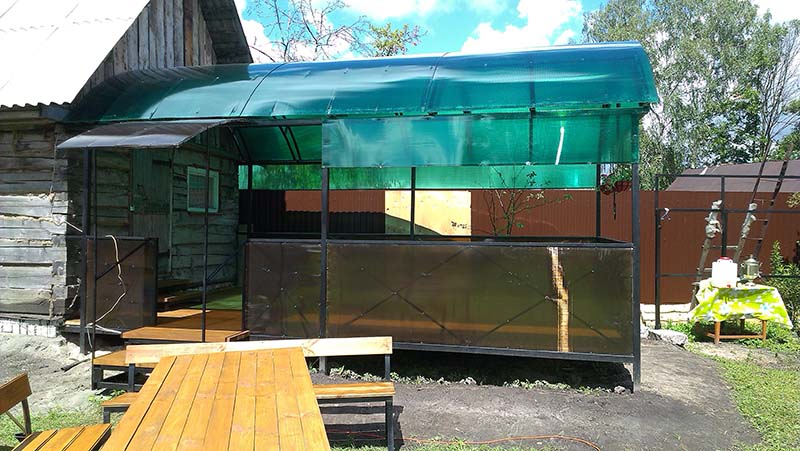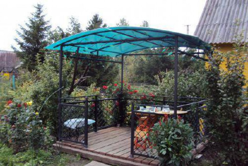 Трудно представить красивый коттедж, частный дом или дачу без уютной беседки во дворе. Она всегда укроет хозяев и гостей от солнечных лучей или проливного дождя, придаст участку опрятный внешний вид. Важно понять, что для беседки больше подходит легкий дизайн. Создать его поможет сочетание профильной трубы и поликарбоната различной расцветки.