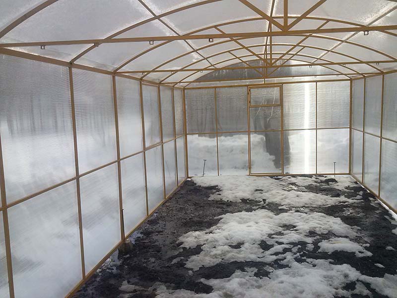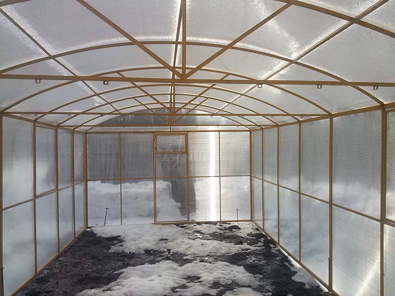 Во первых нужно помнить, что гарантия на теплицу предоставляется только в случае среднестатистической нормы выпавших осадках (до 85 кг на 1 кв.м, т.е. до 20 см рыхлового снега или до 10 см лежалого снега), поэтому требуется следить за теплицей и вовремя сбрасывать снег. При значительных снегопадах требуется постоянно очищать снег, не используя при этом острых предметов, например лопаты.