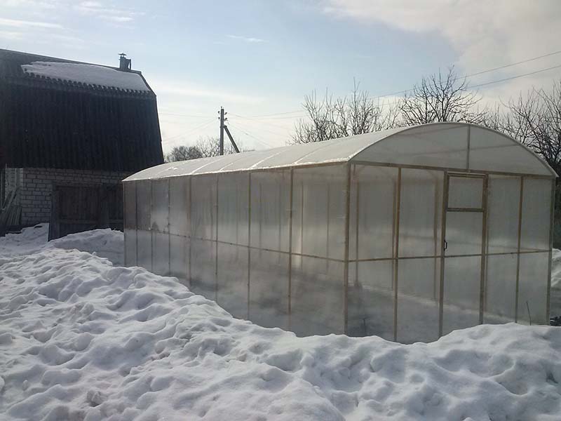 Во вторых, требуется устанавливать на зиму подпорки под дуги, особенно если к теплице нет доступа зимой. Ставить их нужно осенью под каждую дугу. Такие подпорки можно купить или изготовить самостоятельно из любого прочного материала (металла или дерева). Трудно прогнозировать возможные уровни влажности, температурные перепады и снеговые осадки, поэтому даже купившим усиленные теплицы, подпорки под дуги рекомендованы.