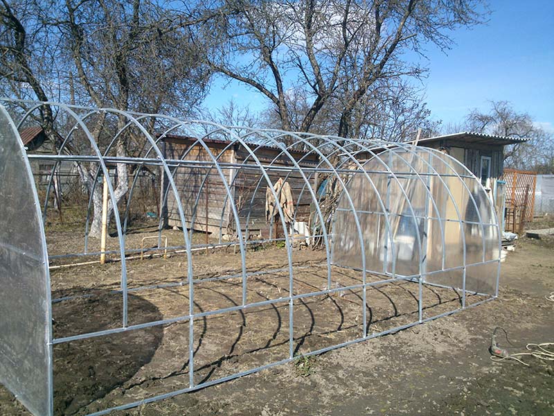 Каркас теплицы сделан полностью из сверхпрочной, толстостенной, оцинкованной квадратной замкнутой трубы 20х20, которая минимизирует коррозию. Арочный тип придает теплице отличную скатность. Великолепно подходит для выращивания не только томатов и перцев, но и большого количества овощных культур, цветов. Торцы у теплицы сварные, дуги цельные, что делает ее крепкой.